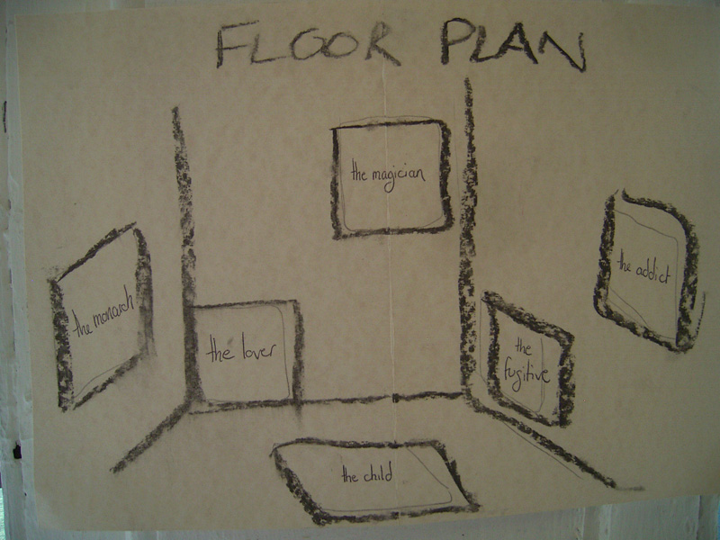 'Seven Voices' is a collaborative piece by Isobel Anderson and Joel Cathcart: a vocal song cycle embedded in a gently disorientating mesh of local field recordings, accompanied by a series of large paintings on cardboard. The work is a 'non-opera'; its haiku-like texts describe seven archetypal yet anonymous characters: the monarch, the lover, the child, the magician, the fugitive, the addict and the hermit, hinting at possible connections without insisting on a particular narrative.